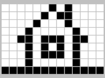 O Bit – ou código binário – é a “partícula elementar” ou o “átomo” de toda a tecnologia digital que temos hoje. Essa partícula é ridiculamente simples. É apenas uma informação com dois estados possíveis (0 ou 1), sendo a menor quantidade de informação na Informática. Simples. Ou é zero ou é um. Ou é ligado ou é desligado. Ou é vivo ou é morto. Apenas duas combinações possíveis. Mas como pode 0 ou 1 se tornar um jogo de videogame complexo ou então sua rede social favorita? Como pode 0 ou 1 se tornar um filme da Marvel ou um episódio do Scicast? O segredo está na combinação de possibilidades de zeros e uns e no significado que damos para esses zeros e uns juntos. Por exemplo, digamos que eu queira representar uma imagem e essa terá apenas duas cores, preto e branco. Como podemos representar de forma binária? Podemos assumir que o branco será zero, e o preto será um. Depois só precisamos de uma matriz de zeros e uns e conseguimos montar desenhos com isso. Na imagem da casa a seguir, podemos claramente ver onde tem pontos brancos e pontos pretos. Facilmente entendemos como representar essa imagem entre zeros e uns. Cada ponto presente na imagem é o que chamamos de pixel.