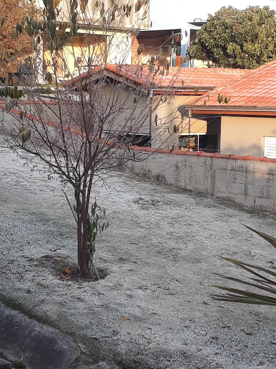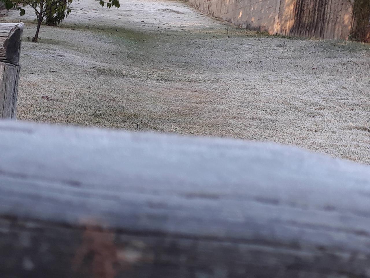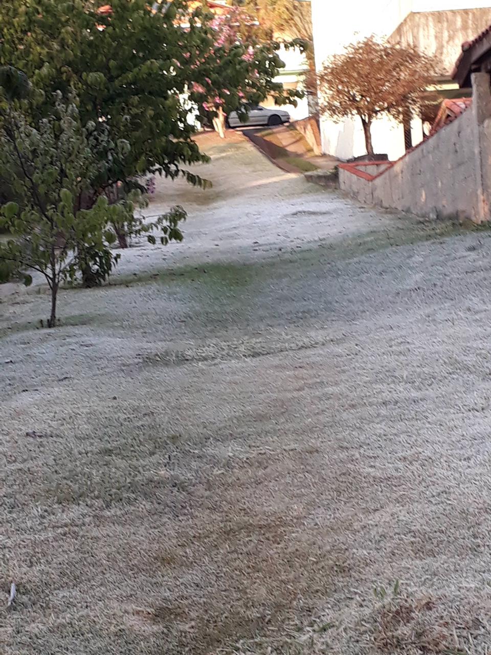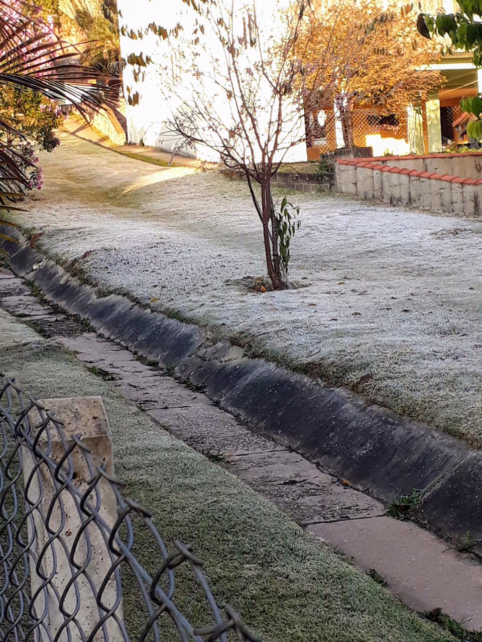 - Geada em uma área gramada. Imagem de 30/07/2021 na cidade de Ibiúna-SP. Foto de Luciana Mara.