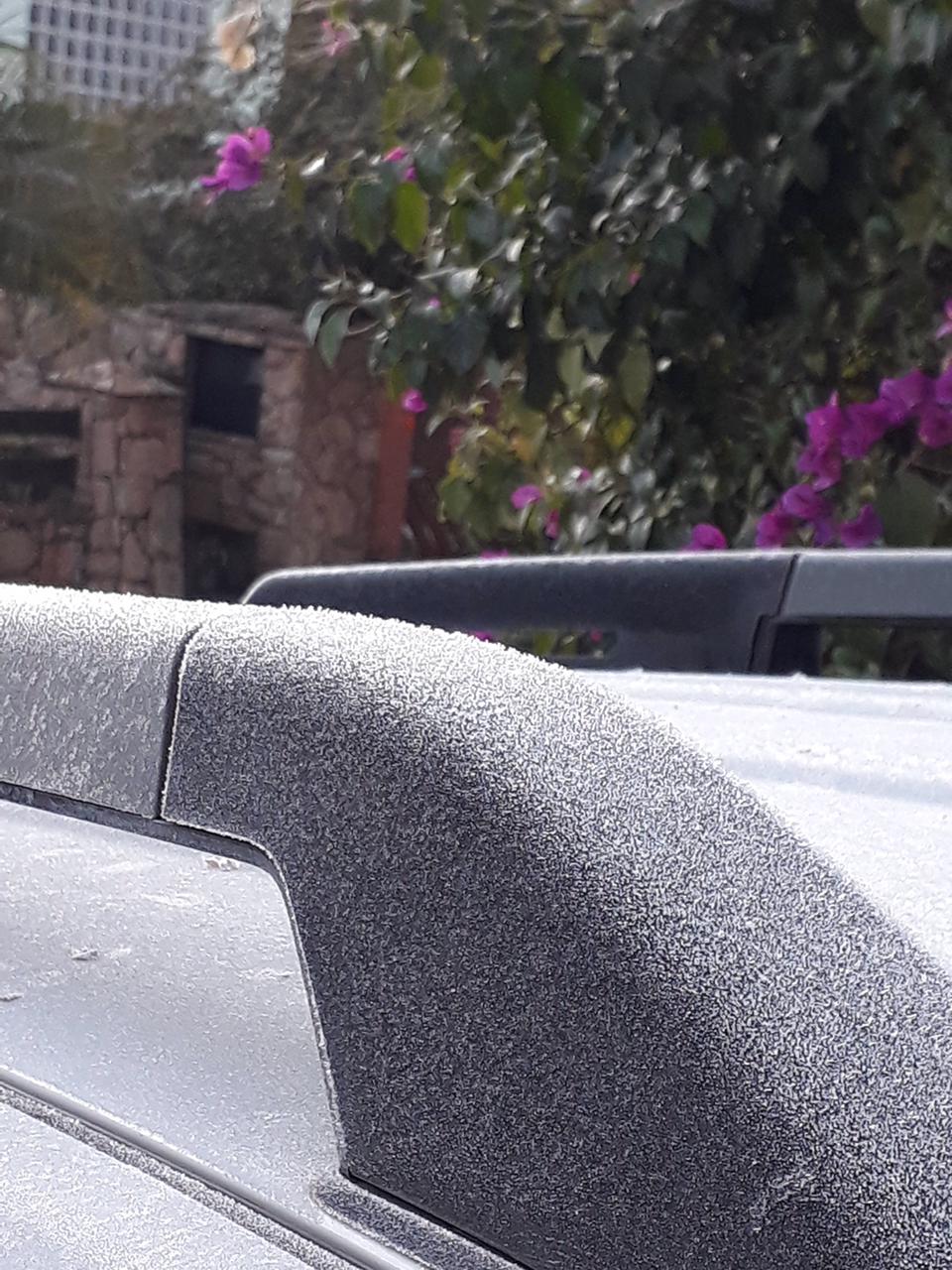 - Detalhe de um carro parcialmente coberto por geada. Imagem de 30/07/2021 na cidade de Ibiúna-SP. Foto de Luciana Mara.